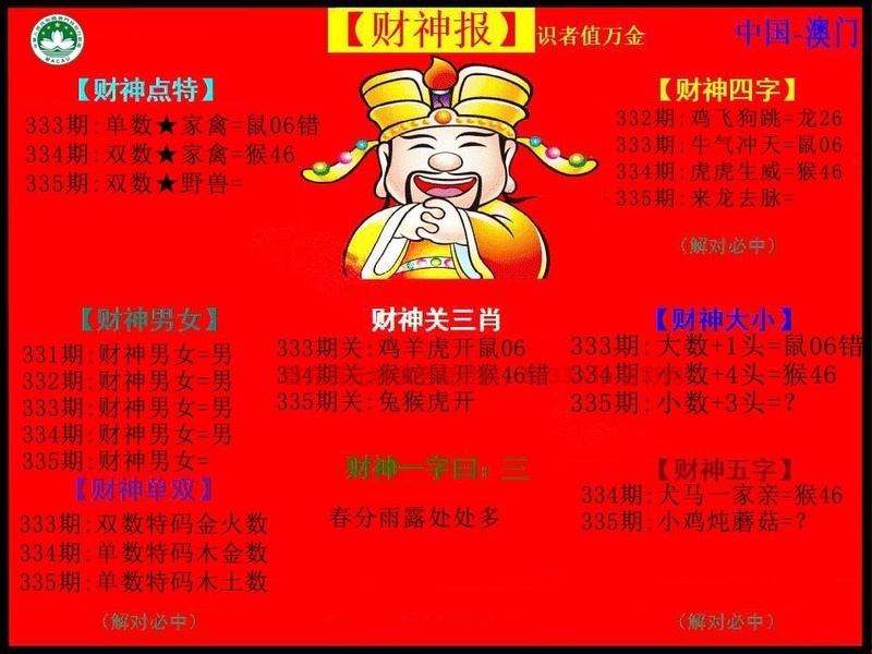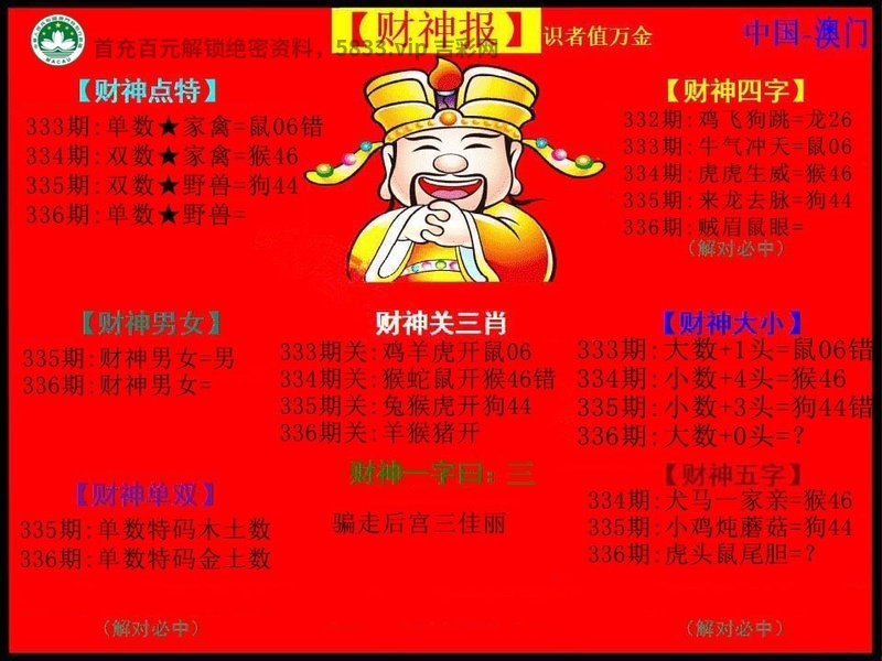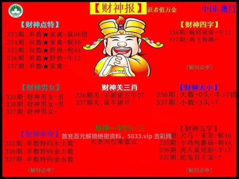 | 333期:【前后四肖】开:鼠06准 前【兔龙牛鼠】后【羊鸡猴猪】 |