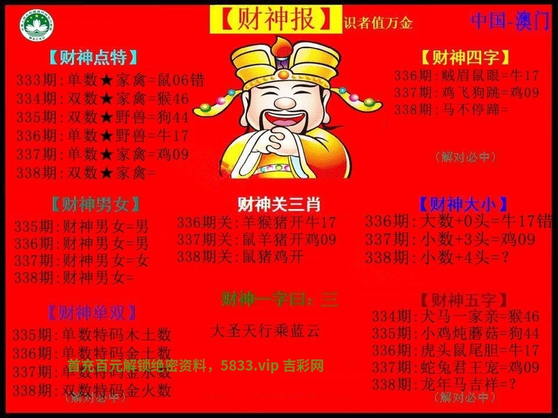 | 335期 | 鼠 | 5尾 | 3头 | 开狗44 |
